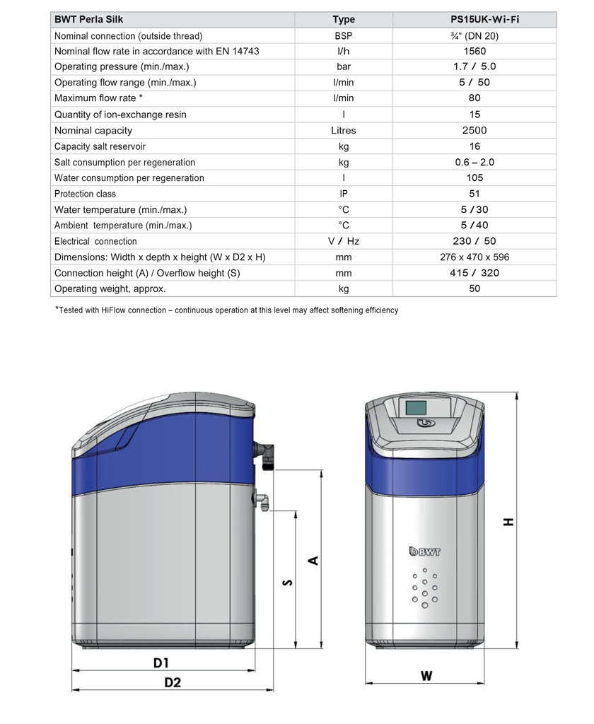 The PS 20Wi-Fi is part of a compact and concise range of modern appliance like water softeners that bring a wealth of features and benefits to the market; like symbol driven set up, IOT capability (wi-fi models only) easy connection with the BWT uniconnect connect block and frugal use of salt and water. All in a well designed and smart cabinet designed and developed for UK homes and plumbing systems. Each model is easy to install and live with.
